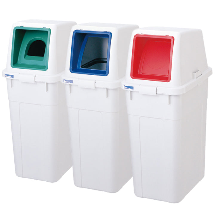 蓋のカラーや投入口の形状でゴミの種類に合わせて使い分けができます。用途に応じて最適な分別ごみ箱の設置ができる豊富な品揃えです。
