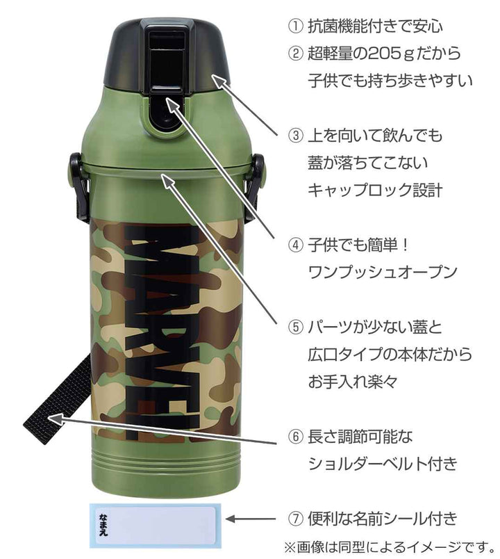 水筒全体に抗菌加工が施されています。直接口に触れるので、抗菌加工は嬉しいポイントです。お子様も安心してお使いいただけます。
