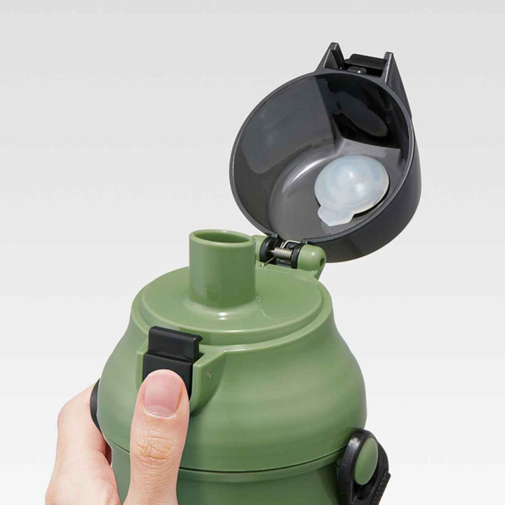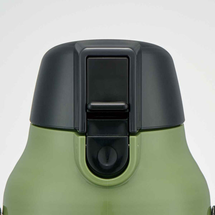 水筒の蓋はボタンを押すだけで開けることができるワンタッチ式です。飲み終わったら蓋をカチッと閉めるだけなので、小さなお子様でも簡単に開閉できます。