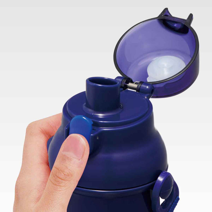 水筒の蓋はボタンを押すだけで開けることができるワンタッチ式です。飲み終わったら蓋をカチッと閉めるだけなので、小さなお子様でも簡単に開閉できます。