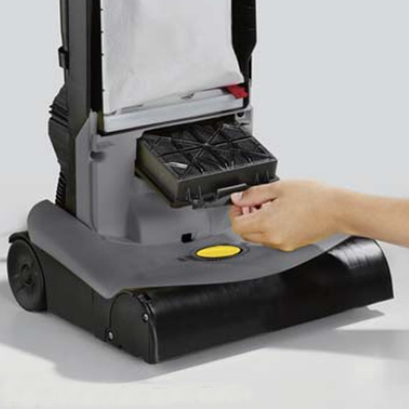 ![]() 合成繊維フィルターバック 従来の紙フィルターバックに比べ集塵力が高く、約2倍の清掃面積を誇ります。交換は簡単なレバー操作で行えるので、塵や埃が舞うことがありません。 |
