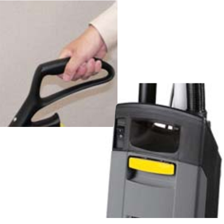 ![]() 快適設計で疲労を軽減 ハンドルは握りやすいデザインで、高さも作業者に応じて調整できるので楽な姿勢で清掃できます。また、本体上部の持ち運び用のハンドルにより移動も容易です。 |