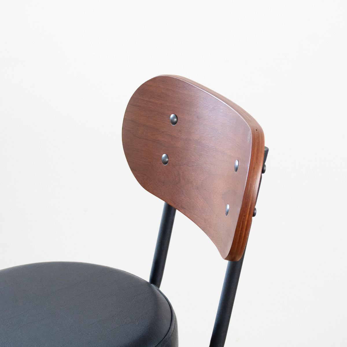 お部屋の雰囲気に合わせて選べる豊富なカラーが揃っています。ブラック、アイボリー、ネイビーブルー、モスグリーン、ワインレッド、キャメルブラウンの6色展開です。背もたれは、ウォールナット調の合板と、落ち着きのあるブラックスチールとの異素材の組み合わせがモダンな雰囲気を醸し出しています。