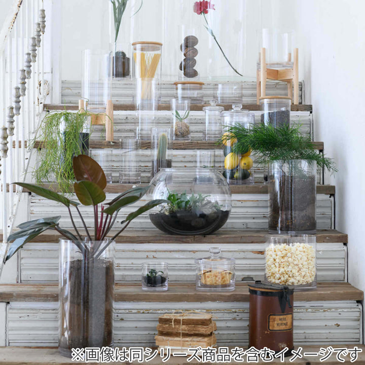 重ねたり、紐を通して上から吊り下げてアレンジしたり、日曜大工用の電動ドリルなどで穴をあけることが可能です。穴をたくさん開けて花をいっぱい活けたり、ガラスでは危なくてできなかったことが実現可能になりディスプレイの幅が広がります。