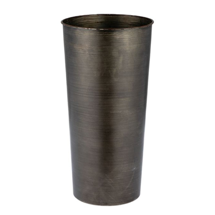 アイアン素材の高さ40cmの円錐型フラワーベースです。ブリキ製品と異なって一枚の板金で作られているので水漏れの心配がなく、錆びにくいラッカー塗装が施されているので、耐久性に優れた花器です。