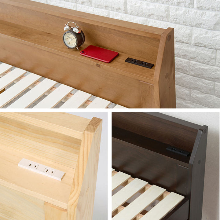 木の温もりを感じられる柔らかなパイン材を使用しており、自然の木の香りでリラックスできます。きめ細かい美しい風合いと経年による色の変化も楽しめます。カラーはナチュラル、ダークブラウン、ライトブラウンの3色展開です。お部屋に合わせてお選びいただけます。