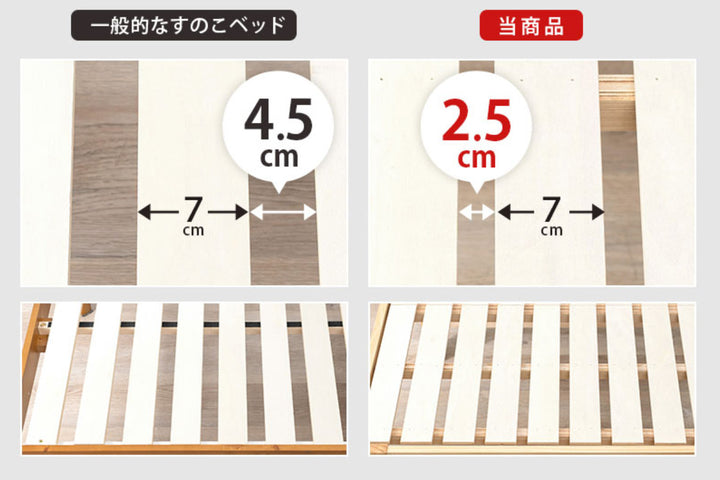 一般的なすのこと比べて間隔が狭く、しっかり支えることができますので、お手持ちの敷き布団を直接敷くことができます。
