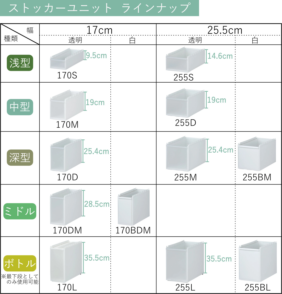 | 備考 | ※ボトル型ユニットは最下段専用です。組み合わせの際は最下段としてのみお使いください。 |