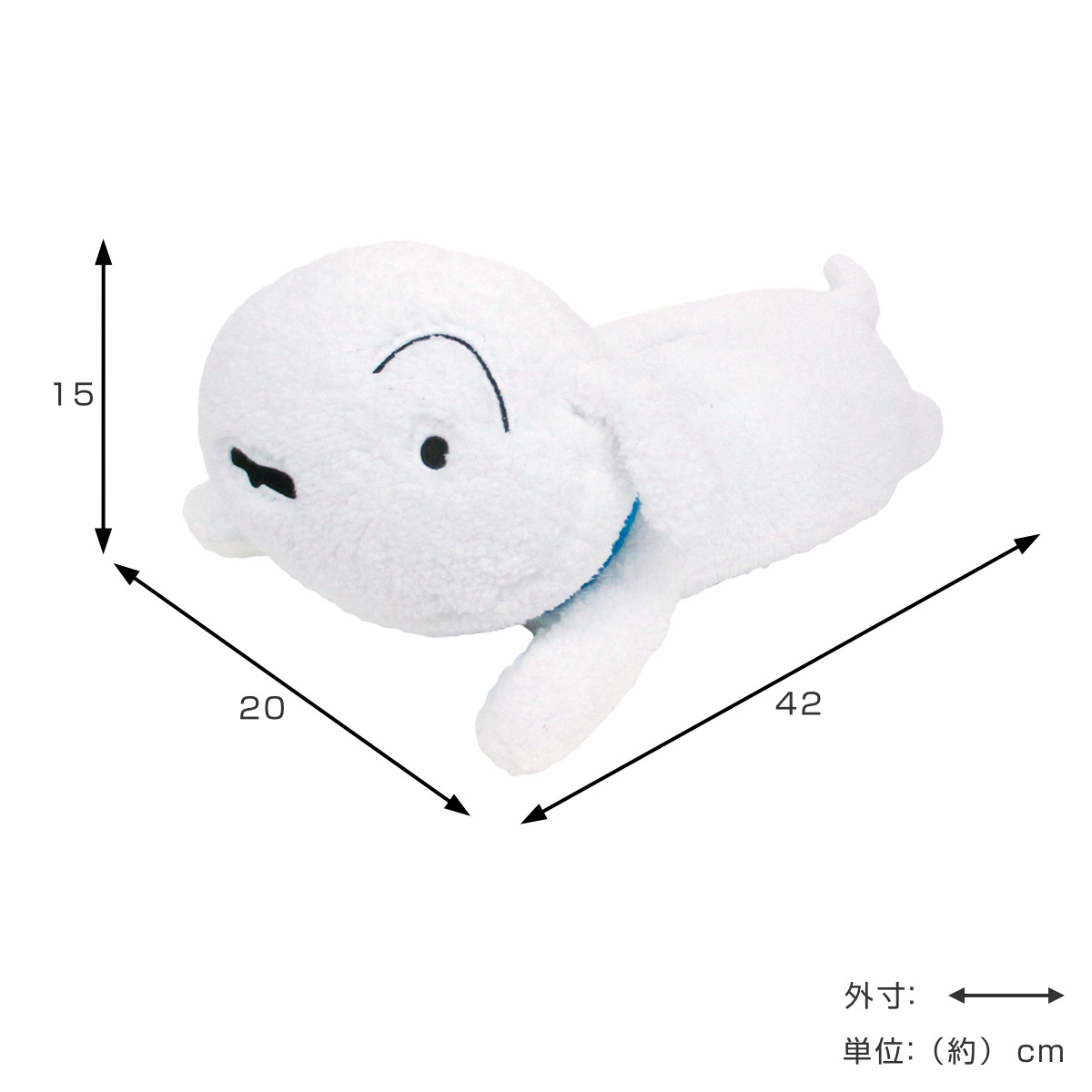 人気アニメ「クレヨンしんちゃん」のシロのティッシュカバーです。手触りの良いふわふわのぬいぐるみ素材は、インテリアグッズとしても存在感抜群で、ティッシュを取り出すのが楽しくなるデザインです。