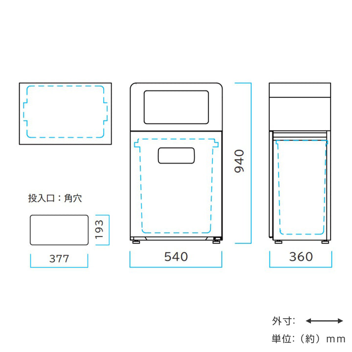| サイズ | 約 幅54×奥行36×高さ94(cm) 角穴投入口:約 横37.7×縦19.3(cm) |