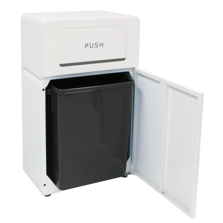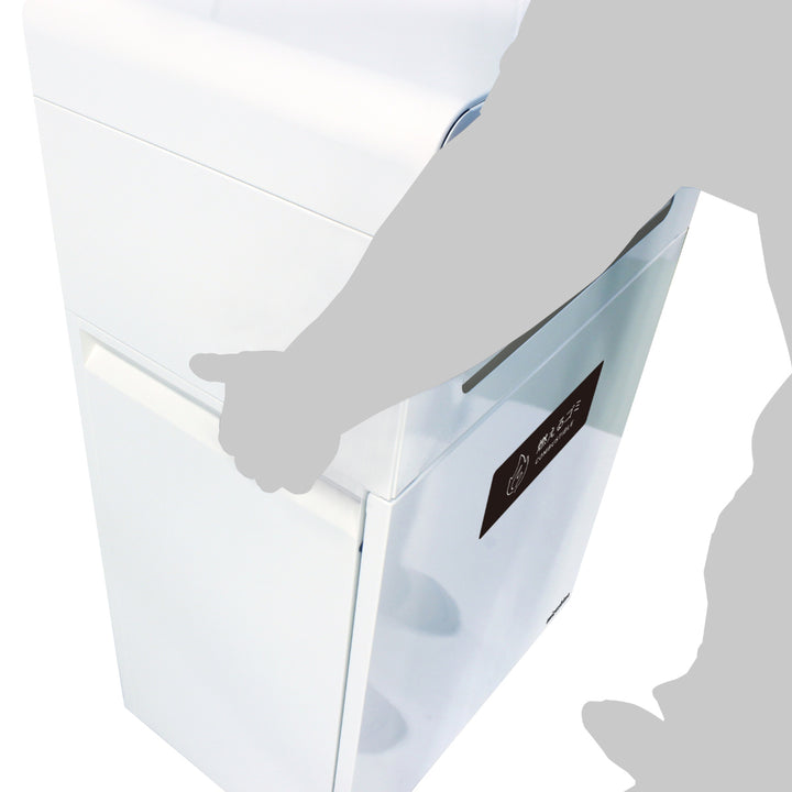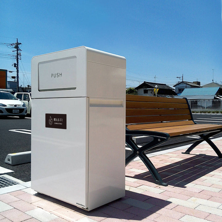 ダストボックスの両面に投入口を確保しているので、壁面設置だけでなく中央配置でも運用が可能です。大きな投入口なので、ごみを投入しやすいつくりです。