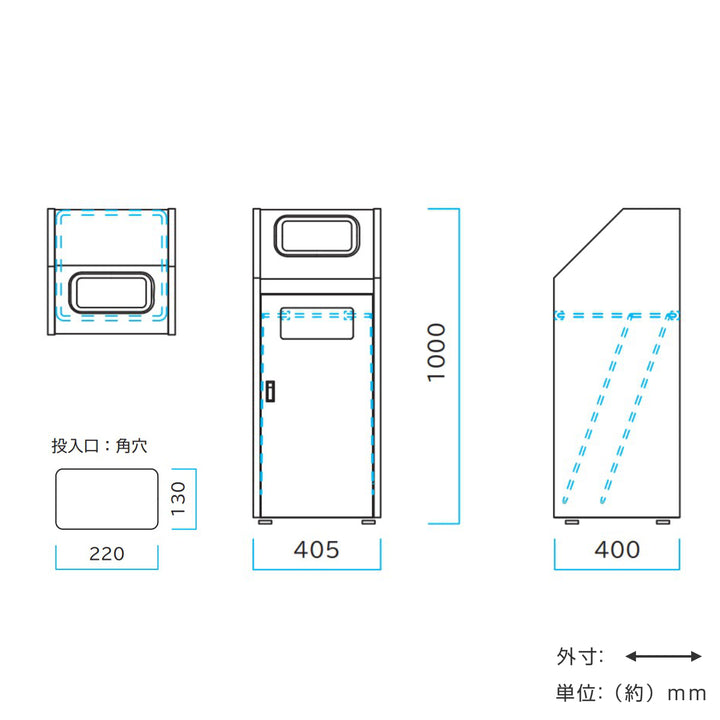 | サイズ | 約 幅40.5×奥行40×高さ100(cm) 角穴投入口:約 横22×縦13(cm) |