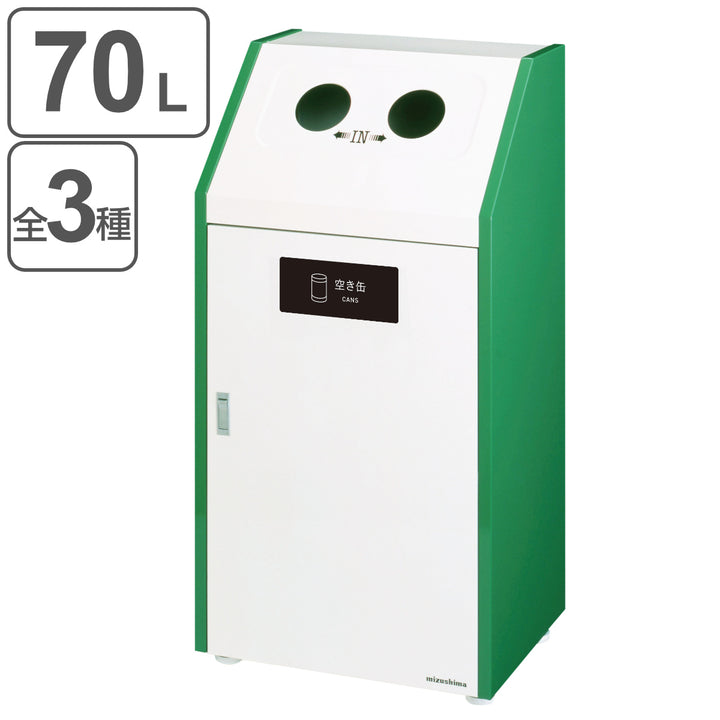 ●アイボリーとグリーンのツートンカラーでレトロな分別用ダストボックス70L丸穴蓋仕様です。