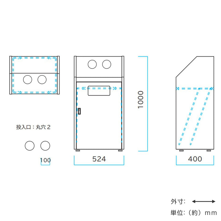 | サイズ | 約 幅52.4×奥行40×高さ100(cm) 丸穴投入口:約 直径10(cm) |