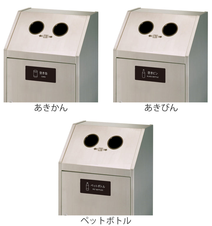 屋内外問わずに配置できるオールステンレス製の丈夫なダストボックスです。レジャー施設や交通機関、商業施設など様々な場所に馴染みます。ごみの種類別に、ダストボックス本体に貼れる分別用シールが付属しています。(お客様貼付)
