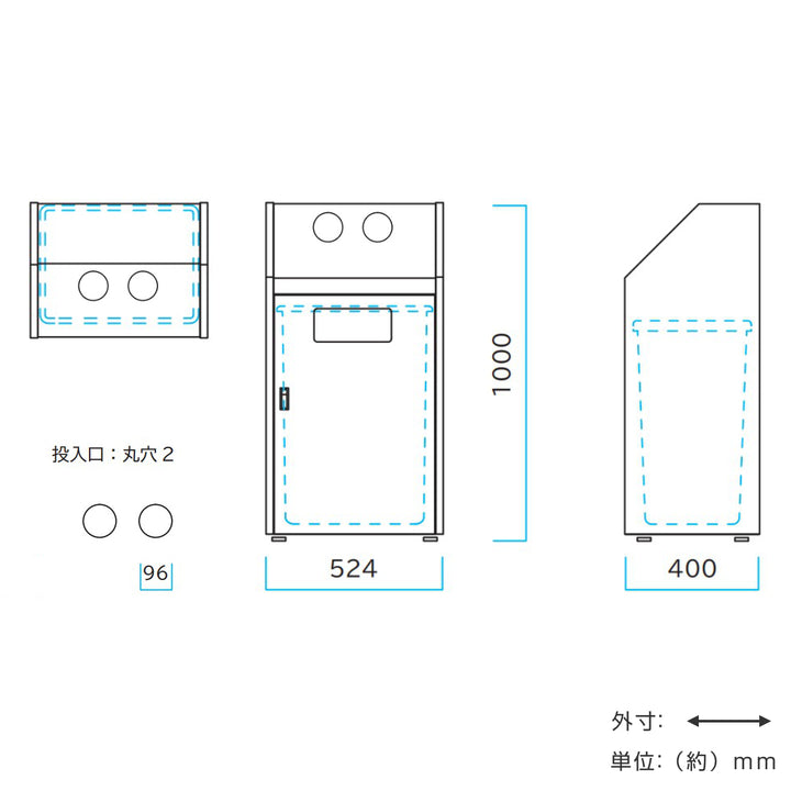 | サイズ | 約 幅52.4×奥行40×高さ100(cm) 丸穴投入口:約 直径9.6(cm) |
