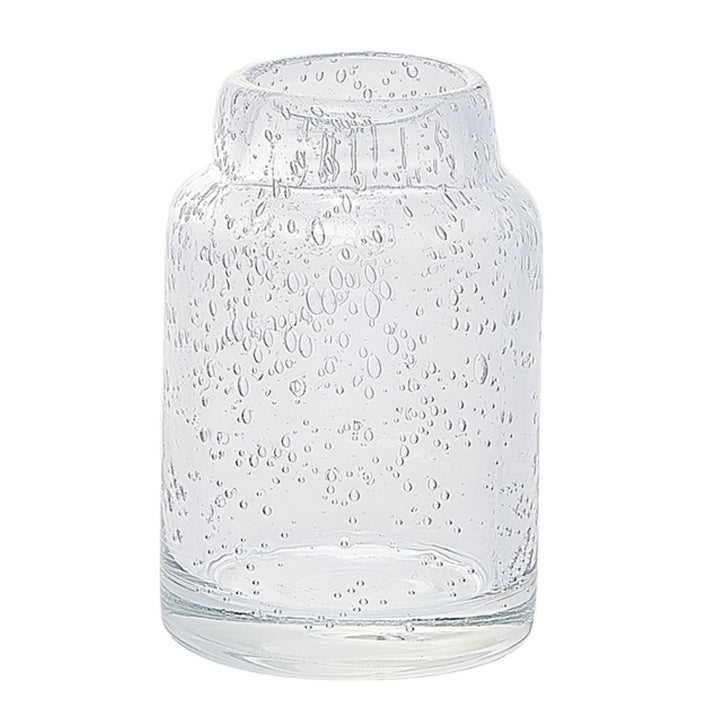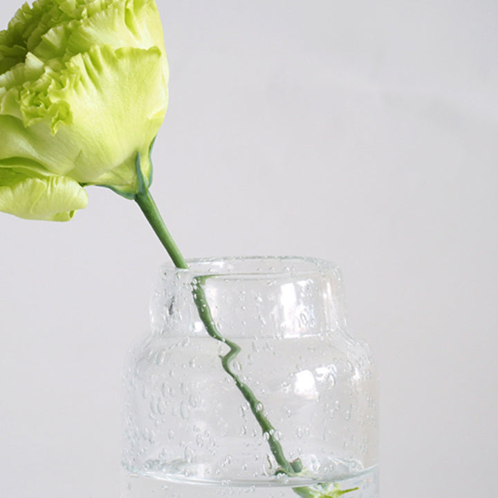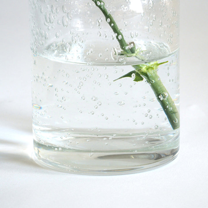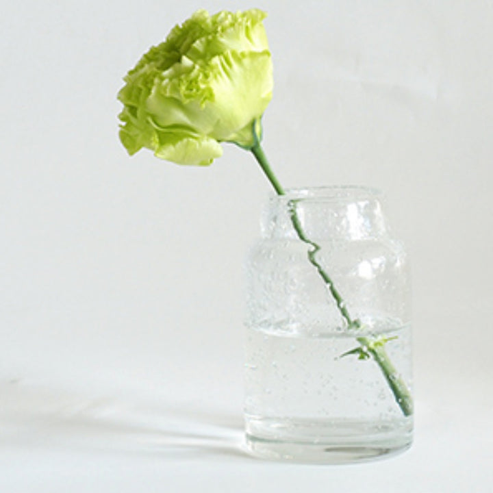 気泡デザインが入ったクリアガラスの花瓶です。どんな植物にも合わせやすく、インテリアともマッチしやすいデザインです。