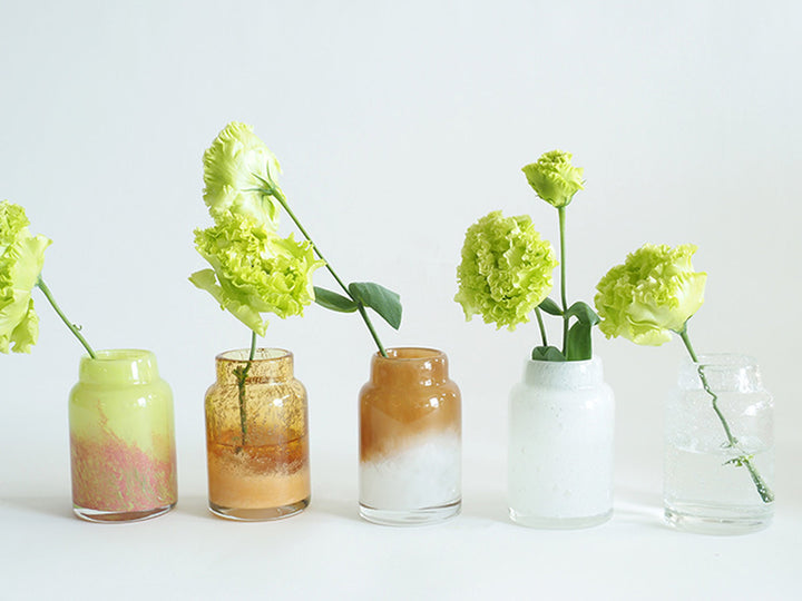 多彩なカラーバリエーションがありますので、花瓶だけで飾っても楽しめる雰囲気のあるシリーズです。色の組み合わせによって季節毎にセレクトするのも面白いです。