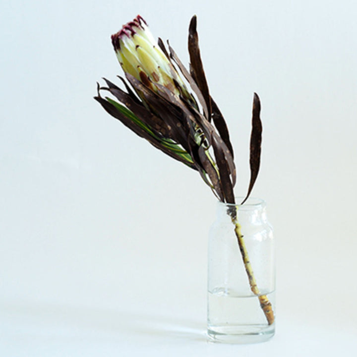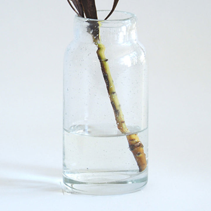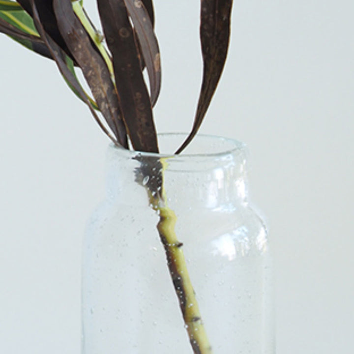 気泡デザインが入ったクリアガラスの花瓶です。どんな植物にも合わせやすく、インテリアともマッチしやすいデザインです。