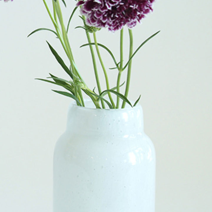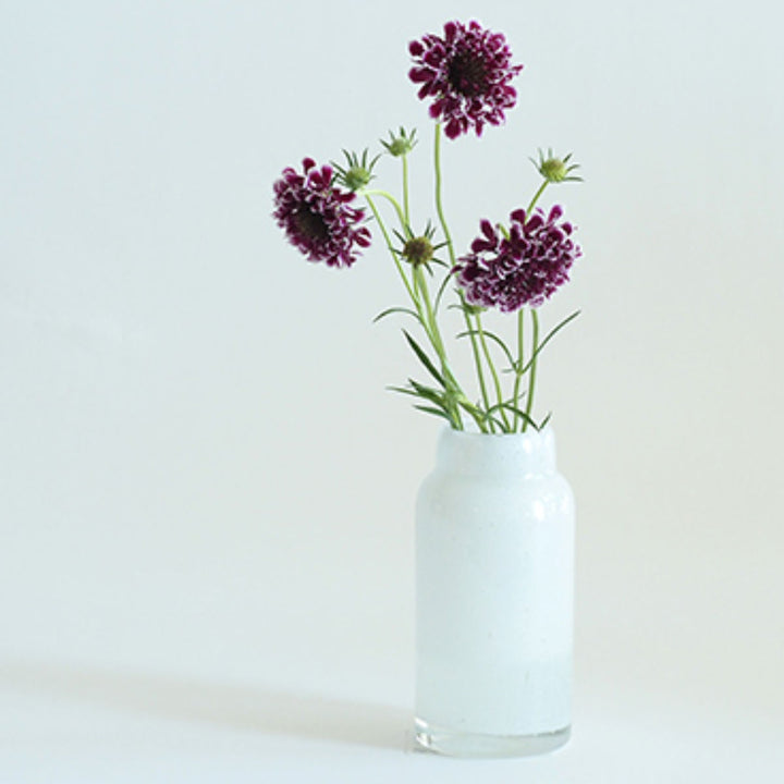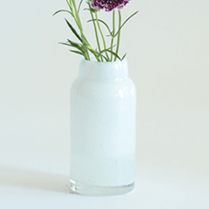 気泡デザインが入った乳白色ガラスの花瓶です。どんな植物にも合わせやすく、インテリアにも優しく馴染むデザインです。