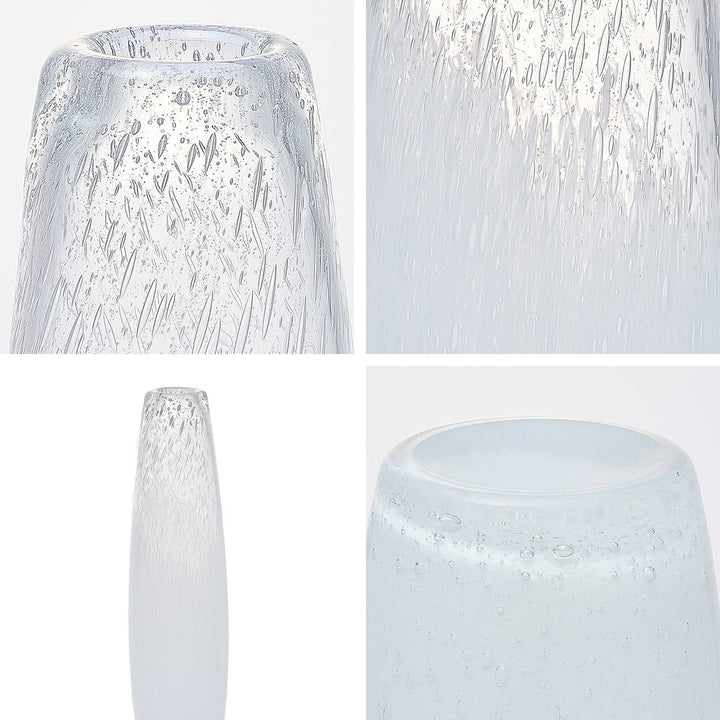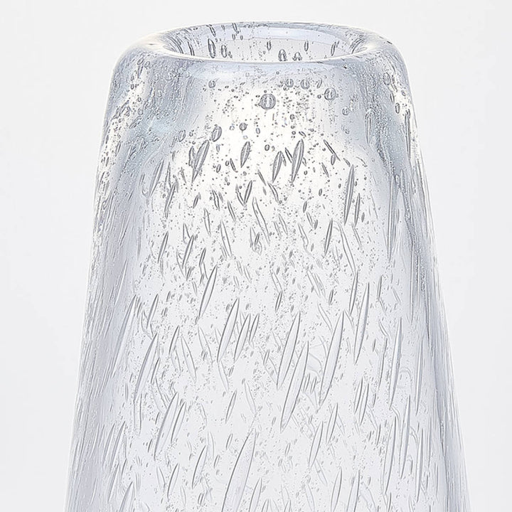 気泡デザインが入ったクリアガラスの花瓶です。どんな植物にも合わせやすく、インテリアともマッチしやすいデザインです。