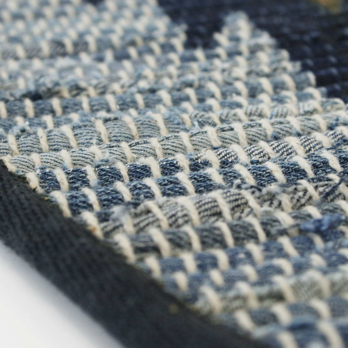 デニムチンディはデニムなどのはぎれを使ったファブリックです。不揃いの素材が味わい深く、素朴でシャビーな雰囲気を醸し出します。