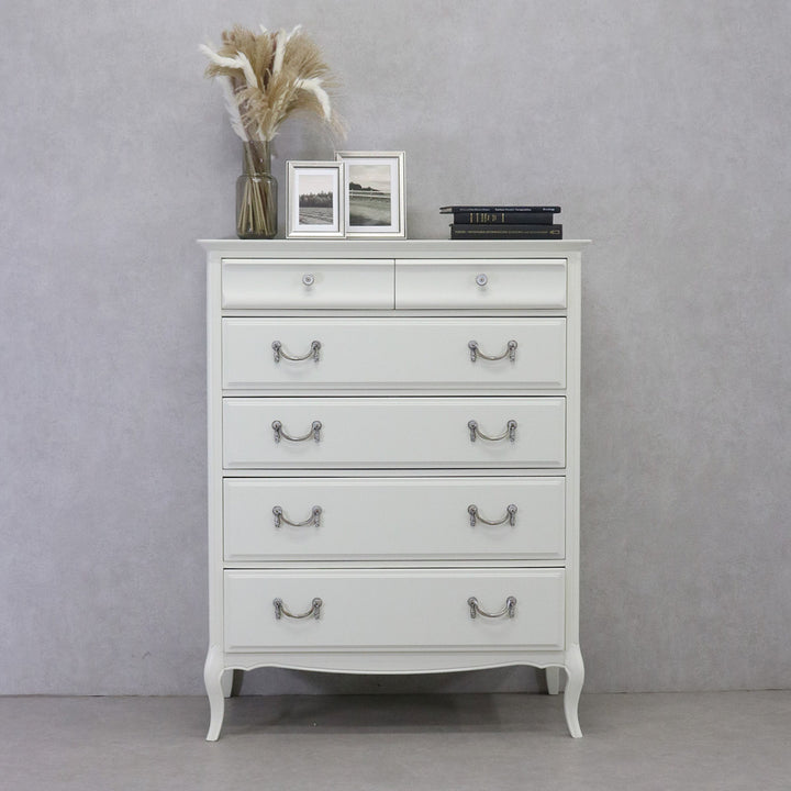 シャビー塗装が施された引き手は、宮廷装飾を思わせるようにエレガントで高級感の漂うポイントです。