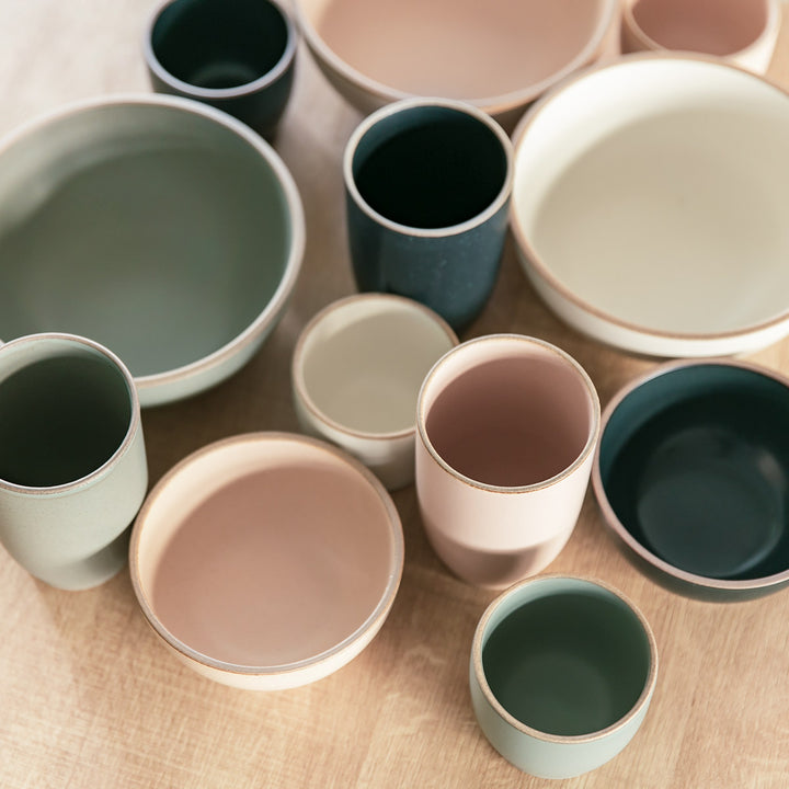 積み重ねて収納できるので、食器棚の中でも場所を取りません。色違いで揃えても、重ねた時の色の対比が素敵です。