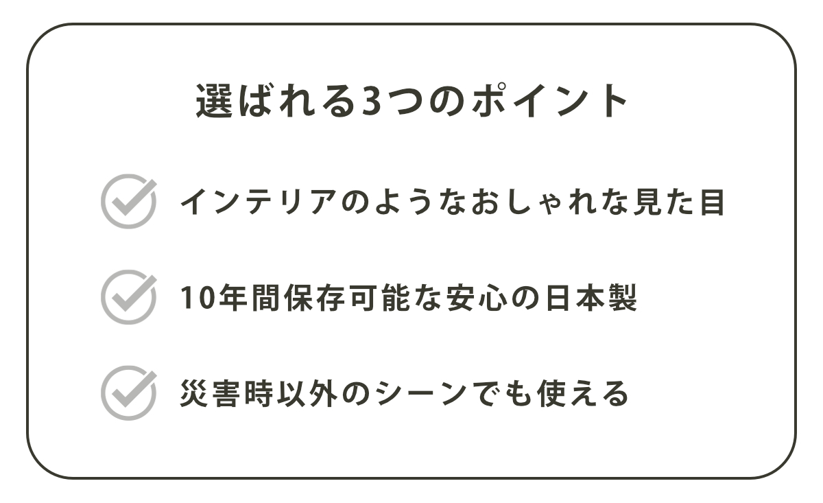 災害時の断水など「もしも」の時に備えて、ストックしておくと安心な緊急用トイレキットです。見える場所に保管しても違和感がないおしゃれなクラフトパッケージです。毎日、目に触れるトイレや洗面所にストックすることで、防災への備えを心掛けられます。