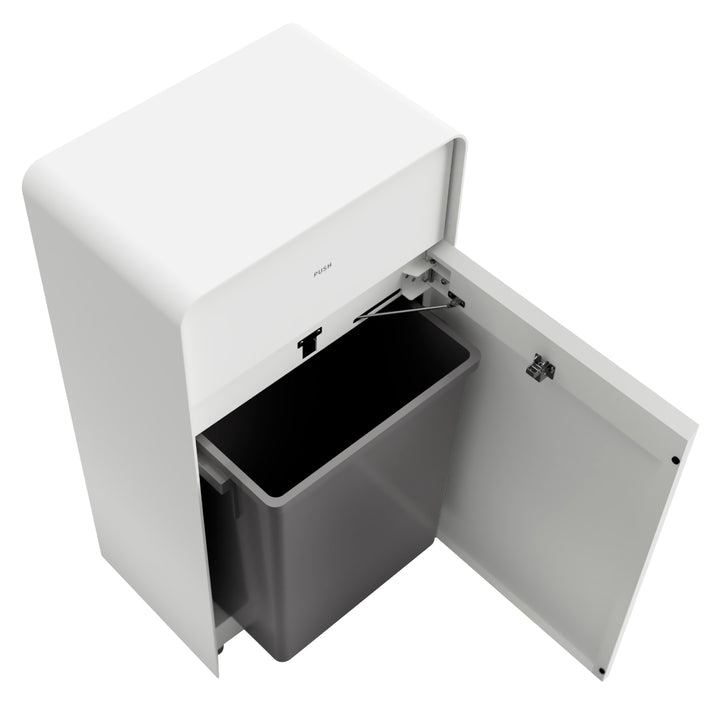 必要最低限の機能を備えたミニマルなMseriesのダストボックス、分別表示付きのホワイトカラーです。無駄な主張をせず利用する空間に心地よく溶け込み、様々なシチュエーションで気兼ねなく利用できるデザインです。学校、病院、レジャー施設、公共施設など、どの空間に置いても馴染みやすい仕上がりです。