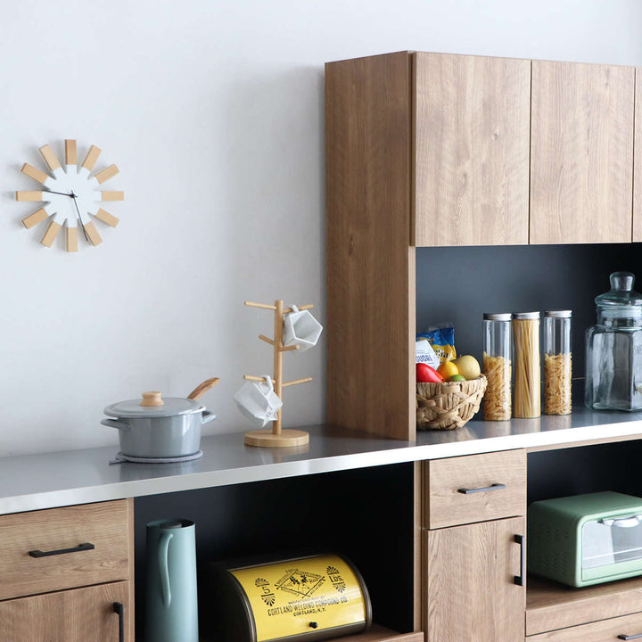 シャビーナチュラルの色味がお洒落なカフェ風キッチンに仕上げてくれます。優しい風合いでキッチンの空間が爽やかな印象になります。シリーズ商品と組み合わせるとより本格的なキッチンになるので、日々の料理が楽しくなります。