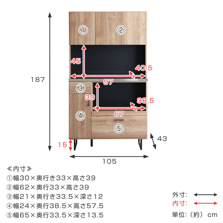 | サイズ | 約 幅105×奥行43×高さ187(cm) |