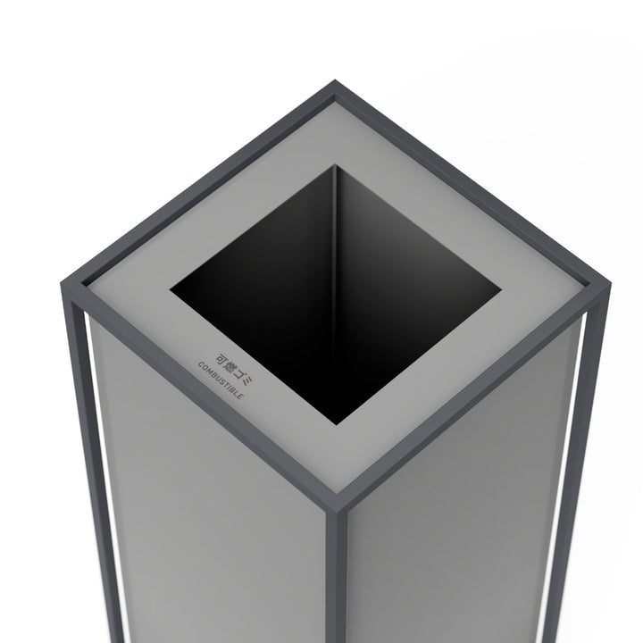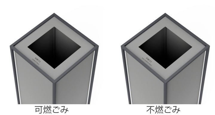 可燃ゴミ、不燃ゴミなどのゴミを投入しやすい、投入口が一辺20cmの角穴タイプです。分別の表示が前扉に記載されているので一目でわかります。