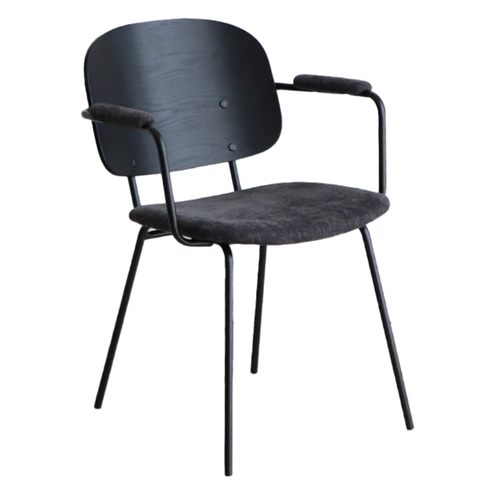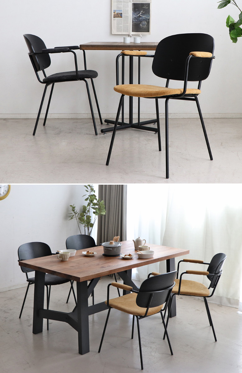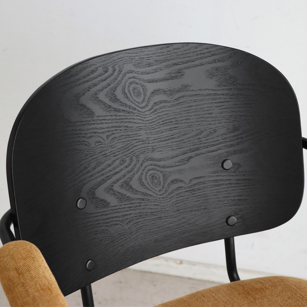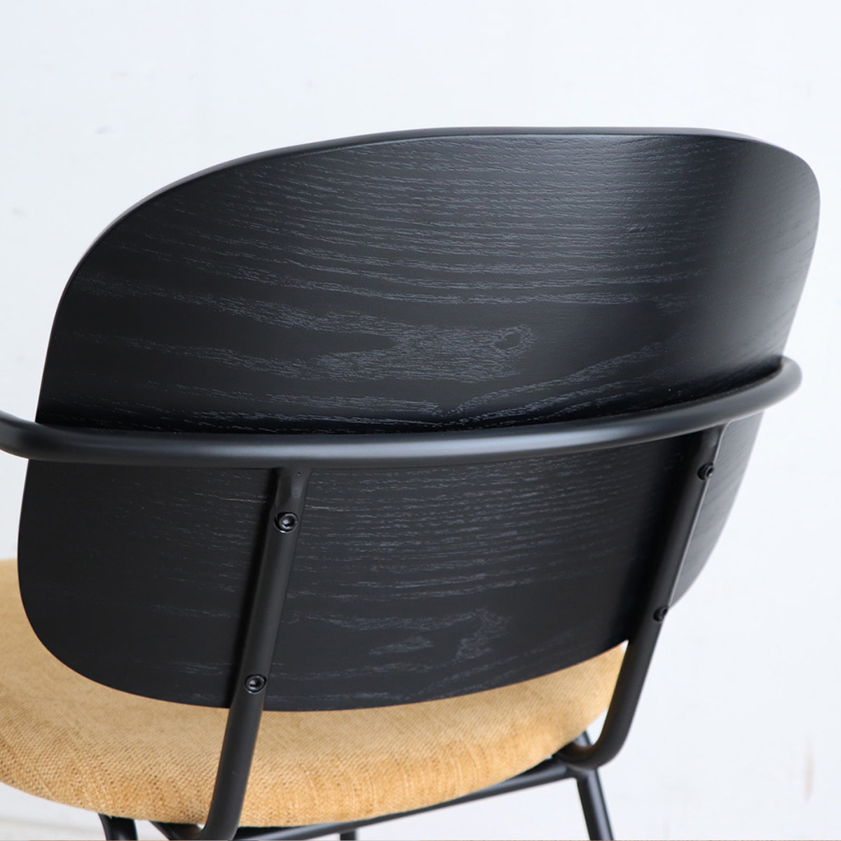 細い線で構成されたデザイン性の高いスタイリッシュなチェアです。広めの背もたれと滑らかな曲木が心地よい座り心地を生み出してくれます。ブラックスチールとファブリック生地の組み合わせはスタリッシュながらもどこか温かみがあり、あらゆる空間に馴染む一脚です。