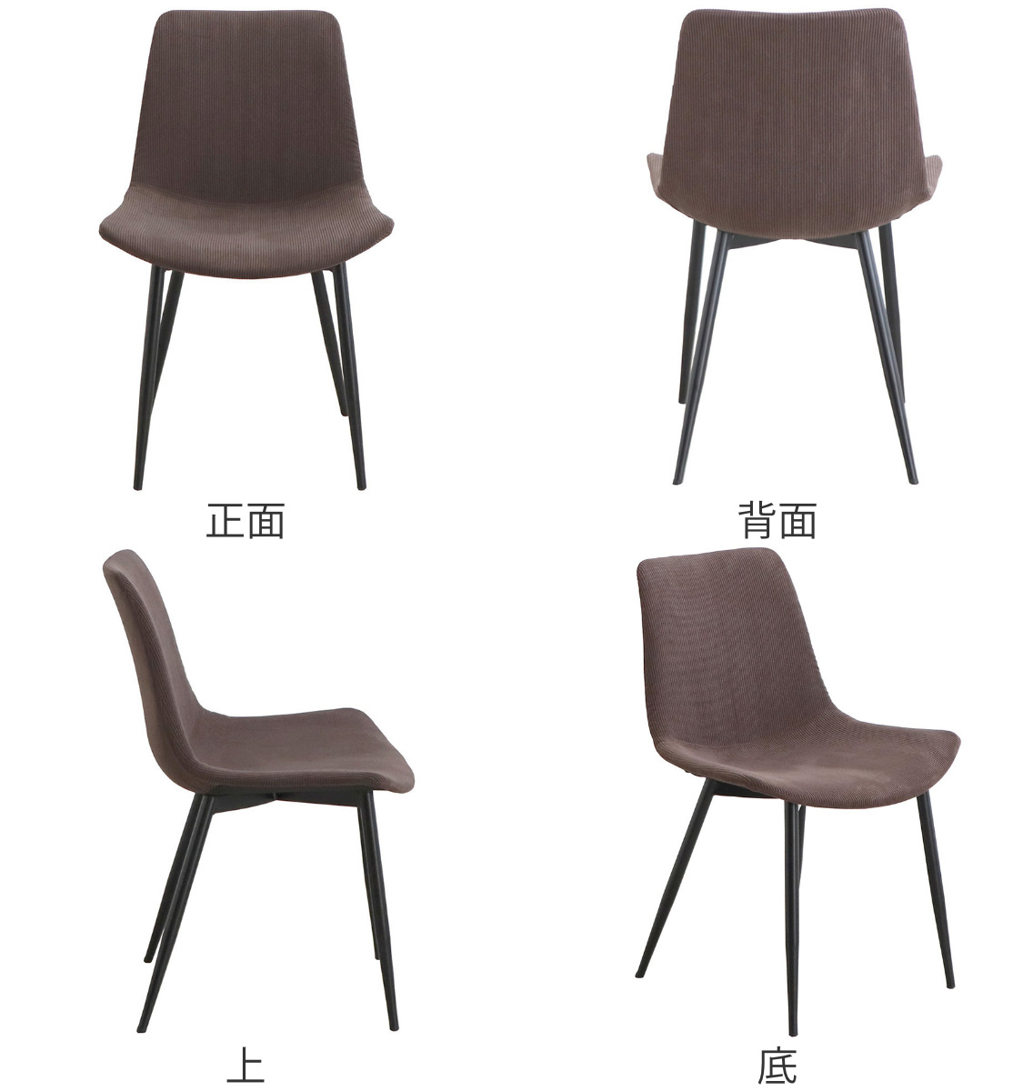 落ち着いた色合いのコーデュロイ生地と細いスチール脚が上質感溢れるモダンなチェアです。肘掛けのないアームレスタイプなので、テーブルに収まりも良く様々なテイストに馴染みます。ダイニングテーブルやサイドテーブルと合わせたり、デスク用チェアとしてもおすすめです。