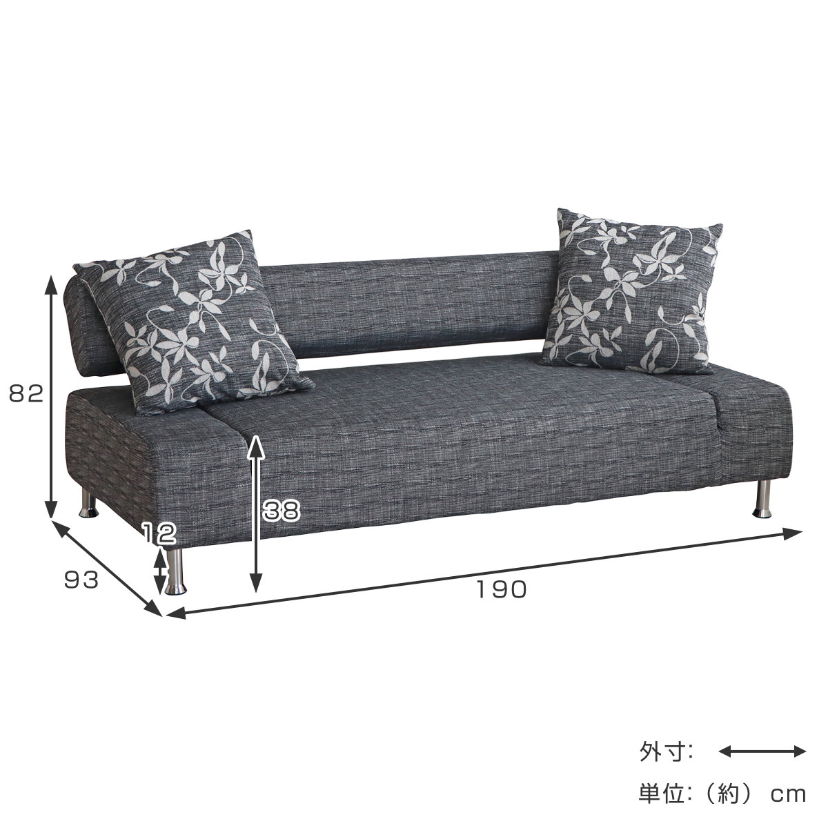 ベッドに展開するとセミダブルサイズになり、男性でも余裕で寝転べる大きさです。1人でごろ寝はもちろん、3人でもゆったり座れる幅190cmの幅広サイズです。