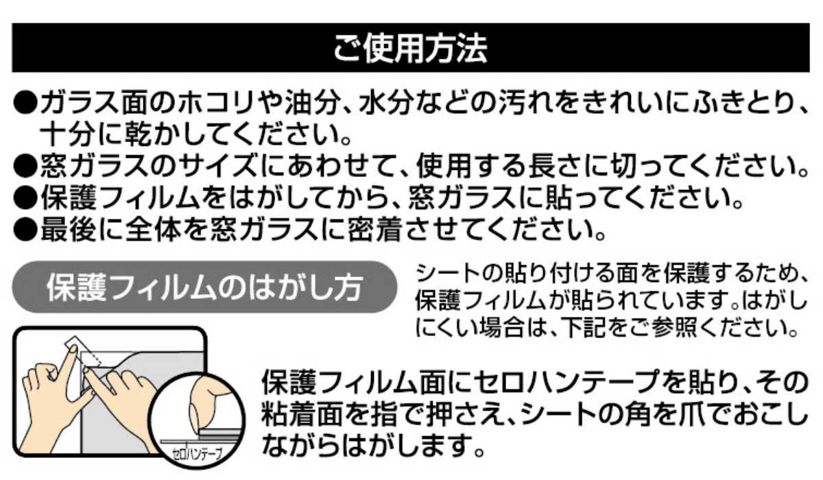 接着剤を使用していないので、失敗しても貼り直しができ、窓のサイズに合わせてハサミで簡単にカットできます。