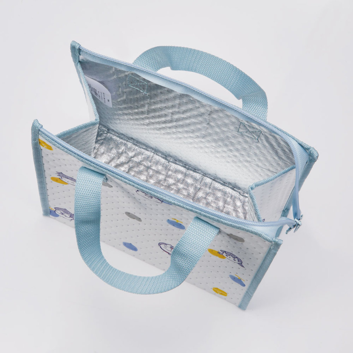 内側はアルミ蒸着素材なので外気からのバリア性が高く、保冷効果抜群です。保冷剤と合わせて使うことで保冷効果がアップします。