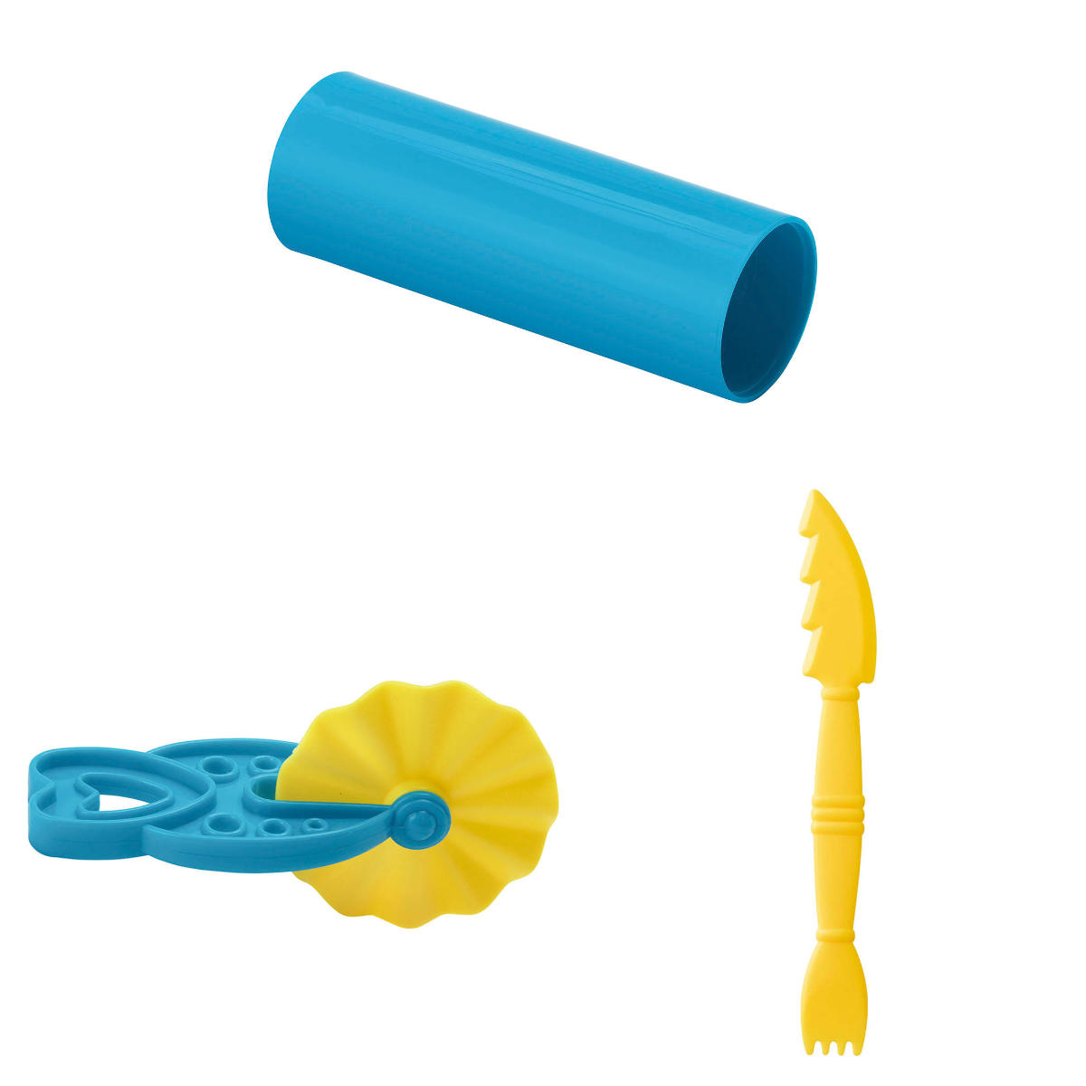 ギザギザカッターやねんどヘラ、ローラーなど楽しいお道具も付いています。遊びながら発想や工夫の力を育むことができます。