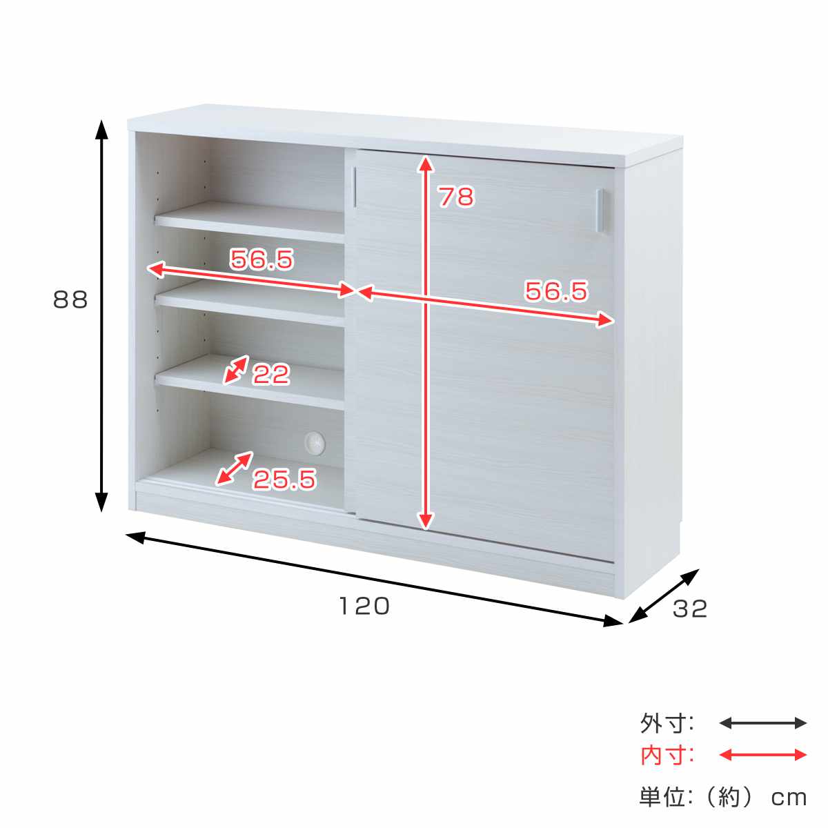 | サイズ | 約 幅120×奥行32×高さ88(cm) |