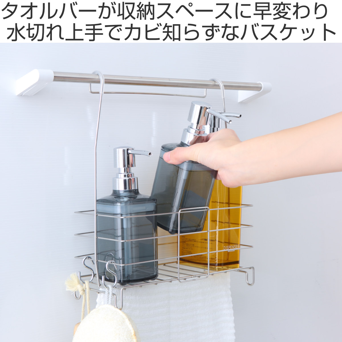 収納 お風呂 吊り下げ そのまま吊るすだけタオルバーバスケット