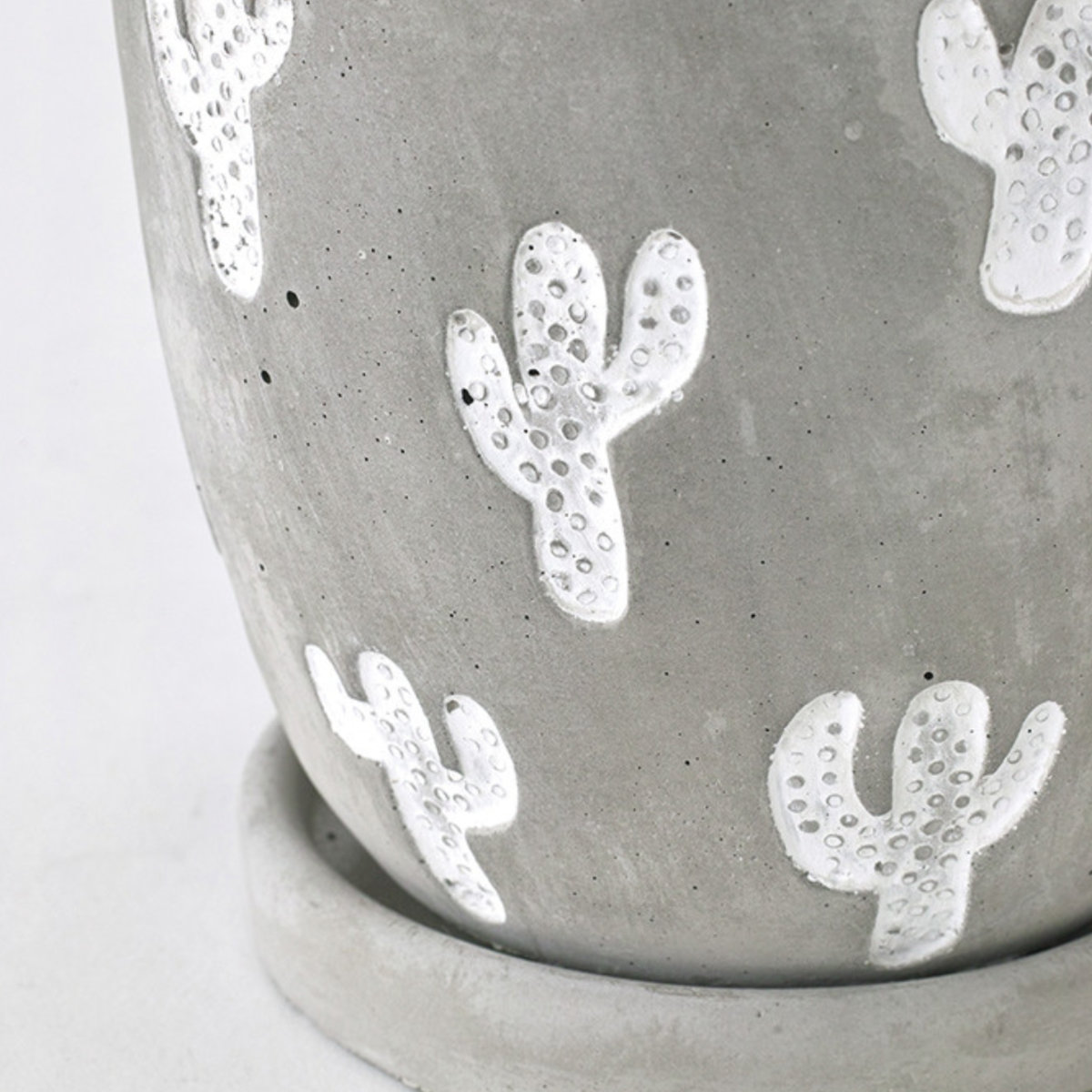 サボテン柄のポットにサボテンを植えるのが愉しみになる可愛いプランターです。シンプルなグレーカラーなのでどんな植物にも合います。見ていて飽きないデザインです。