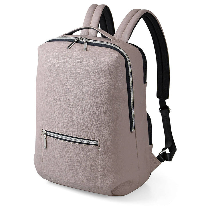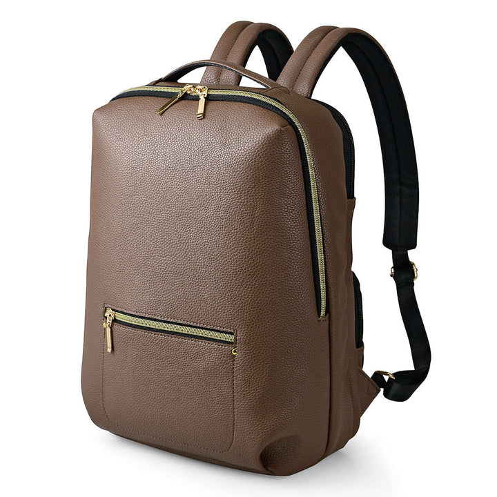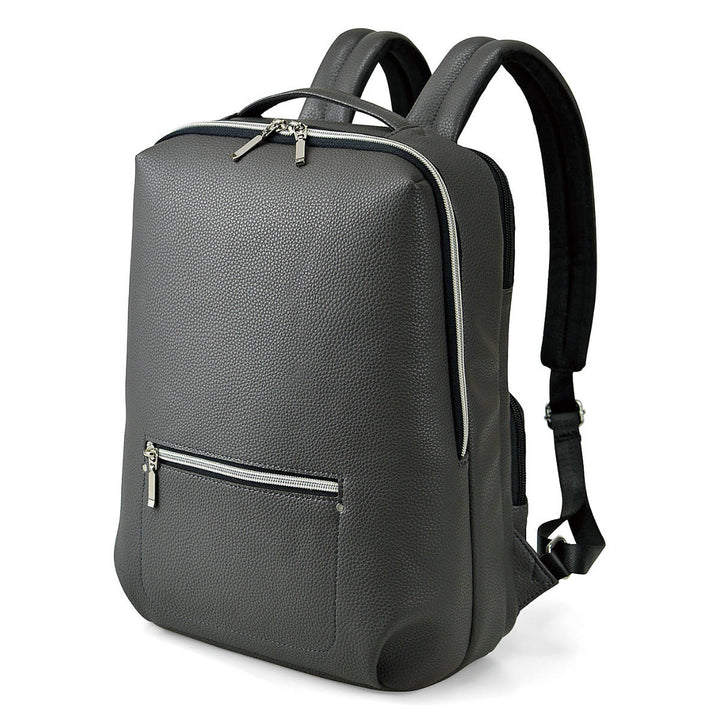 柔らかな合成皮革にクッション材を合わせた軽くて優しい使い心地のリュックサックです。わずか590gと軽く、なめらかな質感ながら形状はしっかりしています。使い勝手の良さを追求し、実用性機能も多数備えています。