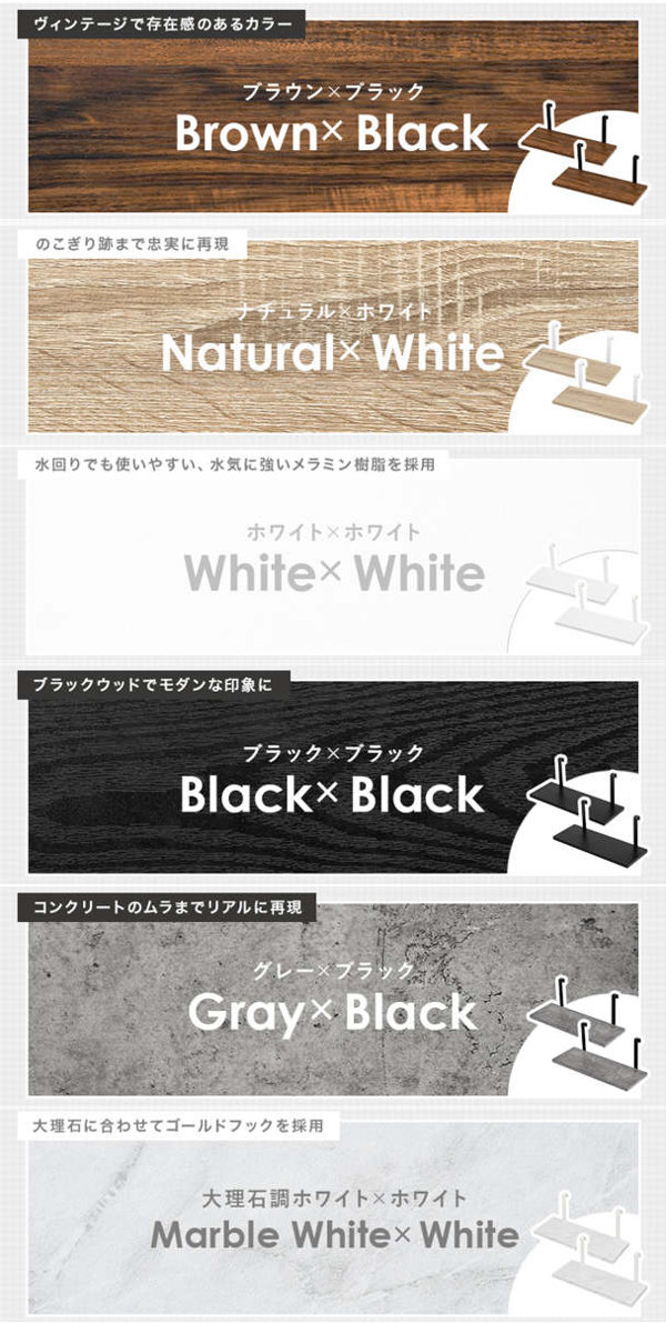 | 種類 | ブラウン、ナチュラル、ホワイト、ブラック、グレー、マーブルホワイト |