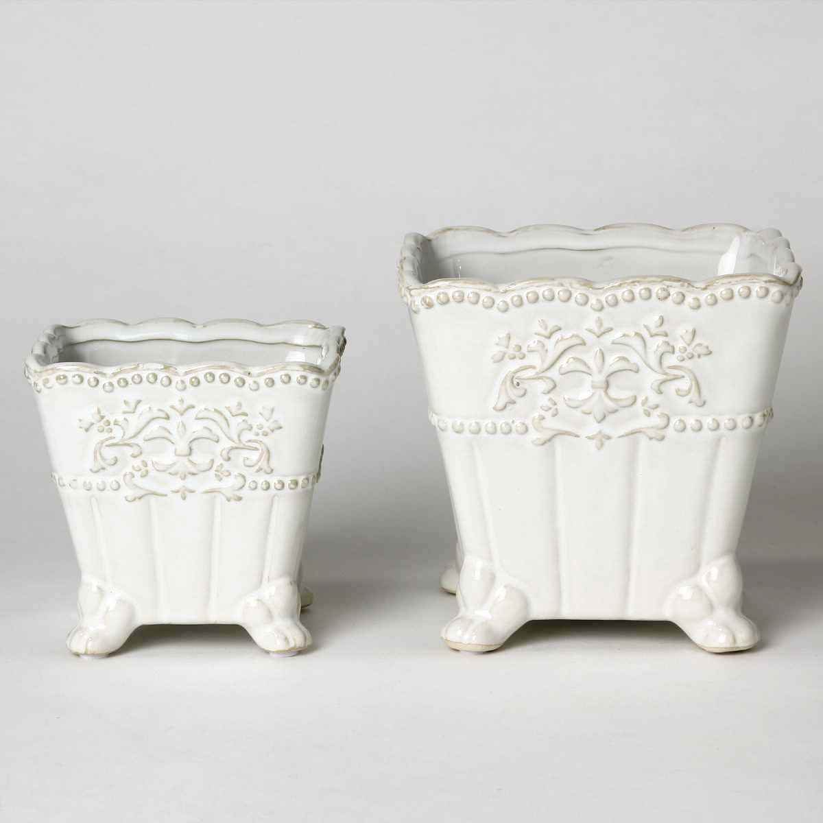 シャビーシックな美しいフォルムの『リスブロンシリーズ』。家の中で植物を育てる人が増えたからこそ、インテリアとしても見せられるポットを飾りたい。キッチンやダイニングにあっても違和感のないデザインを考え、まるで食器のような艶のあるリスブロン(白百合)の紋章が美しい白いポットができました。