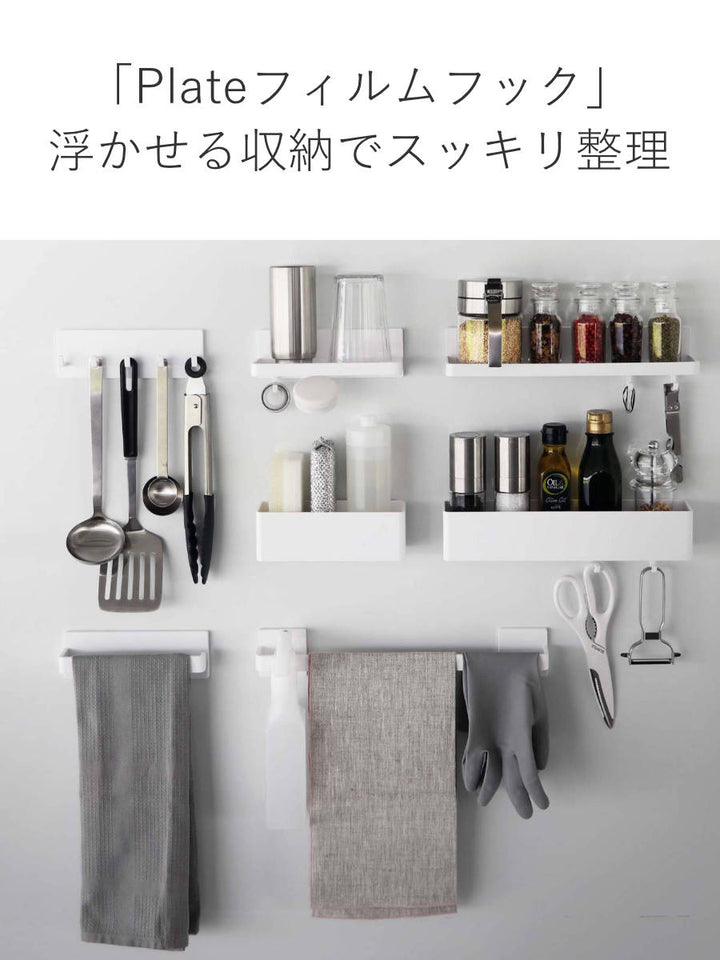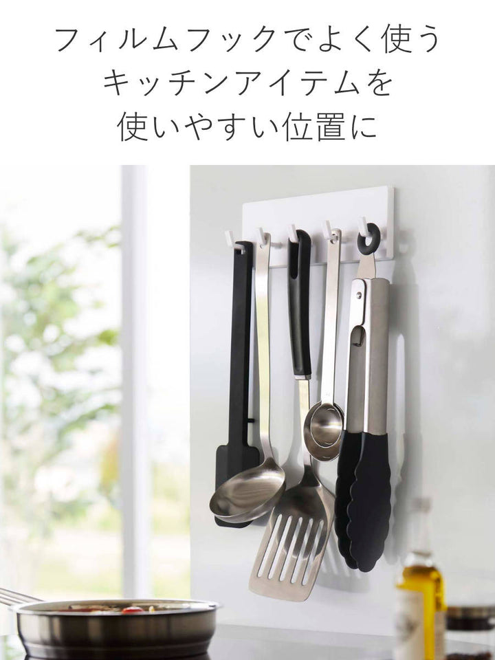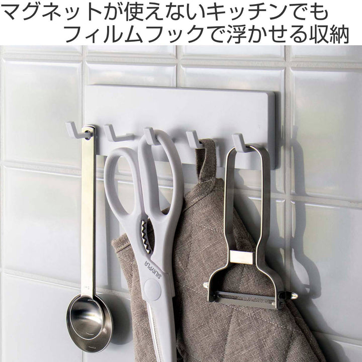 マグネットが使えない場所でも浮かせる収納ができるフィルムフックです。キッチンの壁など光沢のあるツルっとした面に取り付けできるので、トングやお玉などのキッチンアイテムを使いやすい位置に収納できます。浮かせることで、毎日のお掃除も楽々できます。