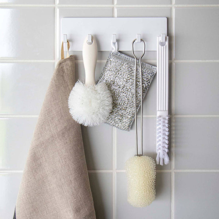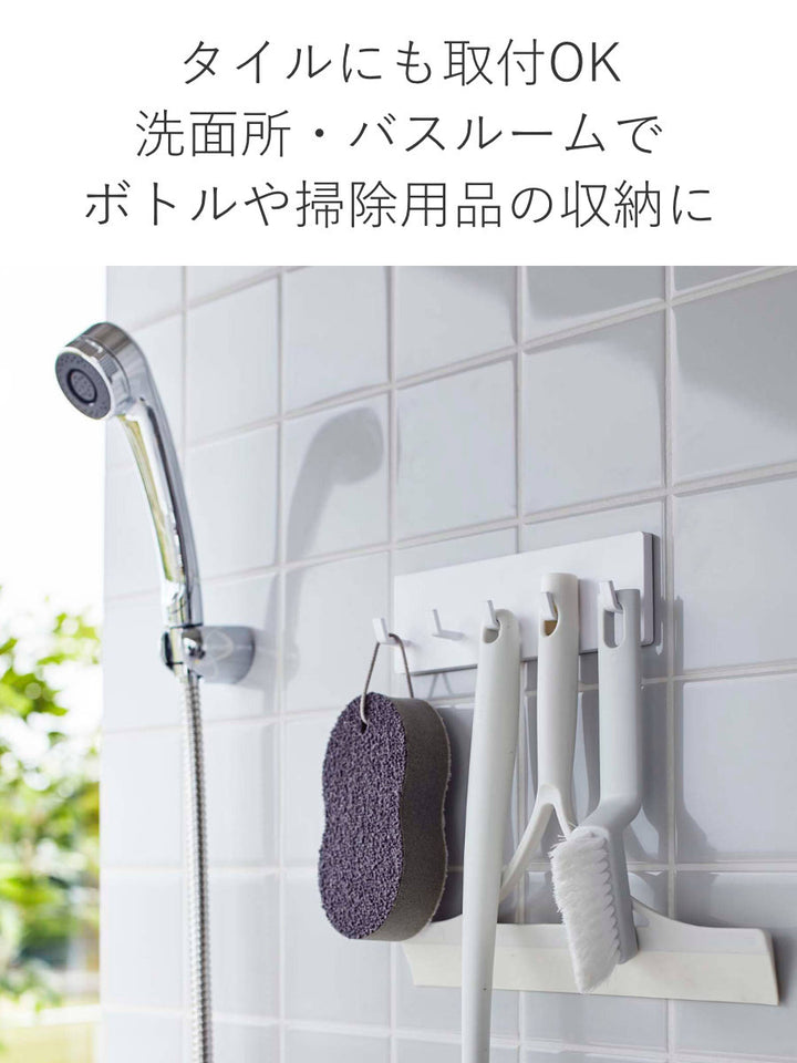 フィルムフックは水に強いので、キッチンのシンク周りやお風呂場のタイルに使えます。お掃除グッズやヘアゴムなどの小物を掛けて収納しておくのに便利です。