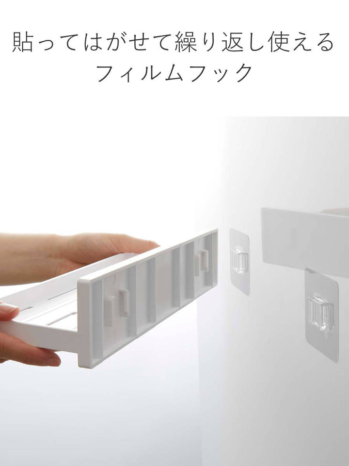 | サイズ | 外寸:約 幅30×奥行10×高さ6(cm) 内寸:約 幅29.3×奥行8.6(cm) フィルムフック接着面(1つあたり):約 幅6×高さ6(cm) |