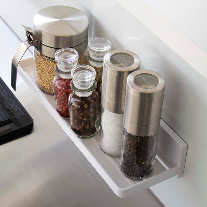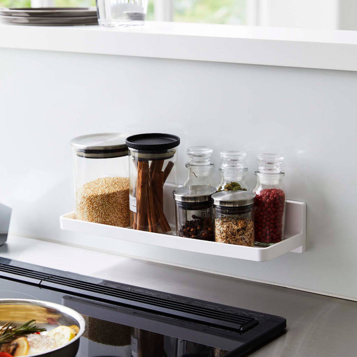 コンロ周りに取り付けると、スパイスボトルやキッチンツールがサッと手に取りやすくお料理もスムーズです。