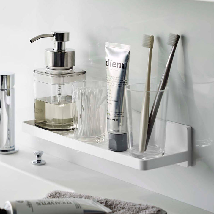 山崎実業のプレートシリーズは清潔感のあるホワイトカラーとシンプルなデザインでインテリアに馴染みます。同じシリーズで揃えていただくとインテリアに統一感が出ます。